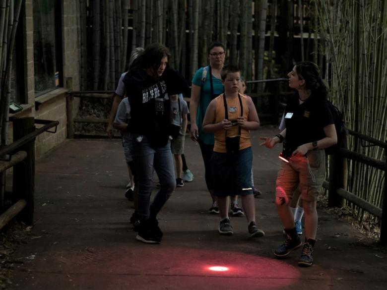 Participating families will spend the majority of the evening outdoors walking around the Zoo with an Educator as their guide, stopping along the way to observe the nocturnal behaviors of the animals that call the Zoo home. During the evening, participants will have the opportunity to use night vision technology and will visit Scaly Slimy Spectacular to discover the nocturnal world of frogs, lizards, snakes, and turtles, illuminated by red flashlights.