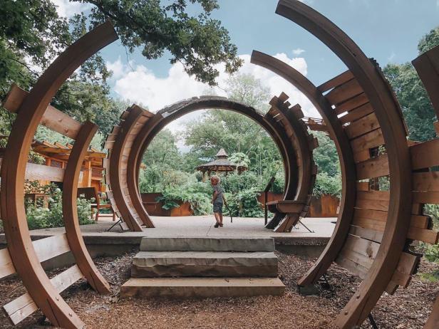 The Alice H. Richards Children’s Garden is an ideal place for children to play and learn in an environment that will inspire their sense of adventure, wonder and love for nature. The 2.5-acre, accessible garden contains a variety of fun, immersive locations, including a chestnut tree house, fossil wall, giant water-misting mushrooms, vegetable garden, a replica of a North Georgia cave, and more — all designed to be learned from, crawled through and touched.